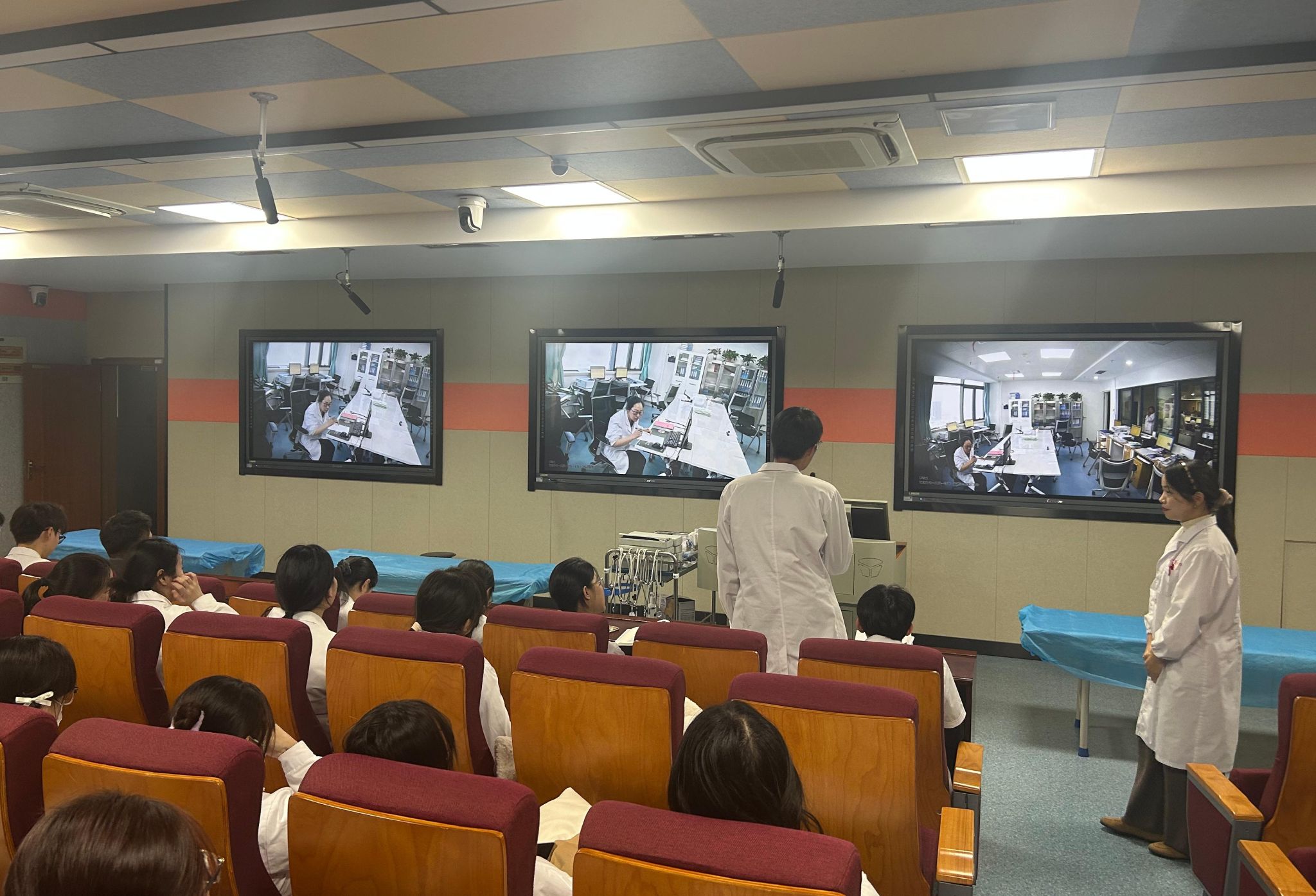 为深化公司智慧医教平台内涵建设,丰富教学改革成果,12月5日下午,公司组织推动诊断学教研室在实践课中开展远程交互教学。课程由校本部教师黄亚纬主讲,一附院心脏大血管外科教师朱雪双床旁示教。临床医公司党政领导、一附院教育处主任及部分教师进行现场观摩。
