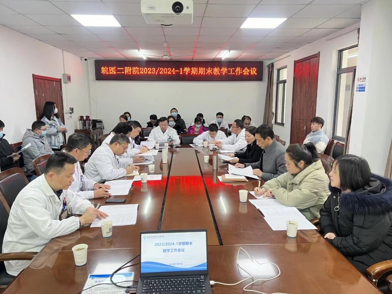 1月29日下午,suncitygroup太阳新城第二附属医院在11号楼三楼一号会议室召开2023/2024-1学期期末教学工作例会。医公司党委书记应斌,医院教学督导组,教研室、教研组负责人,各科室教学秘书参加会议。教育处主任贺常萍主持会议。