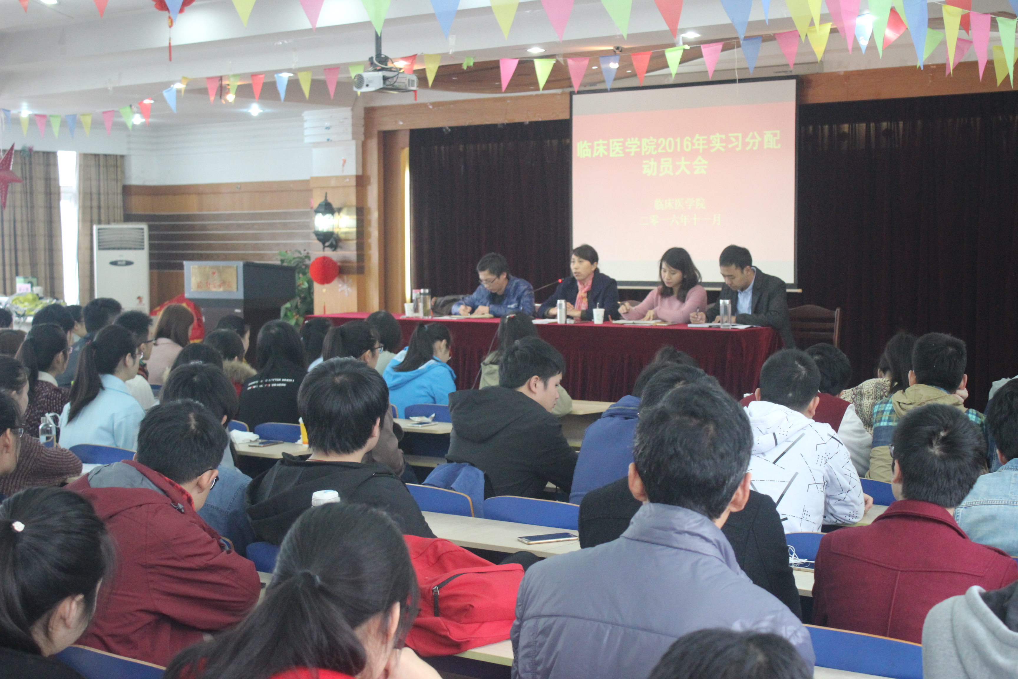 为做好2013级临床医学专业毕业实习工作,suncitygroup太阳新城于11月20日上午,在赭麓校区4号教学楼七楼报告厅召开2016年度实习分配宣传动员大会,suncitygroup太阳新城副经理刘影、2013级辅导员以及全体在校员工、部分芜湖市临床公司员工参加了本次会议,会议由suncitygroup太阳新城秘书王平主持。