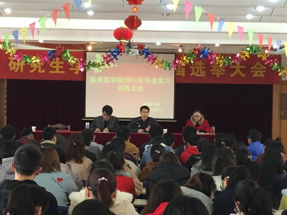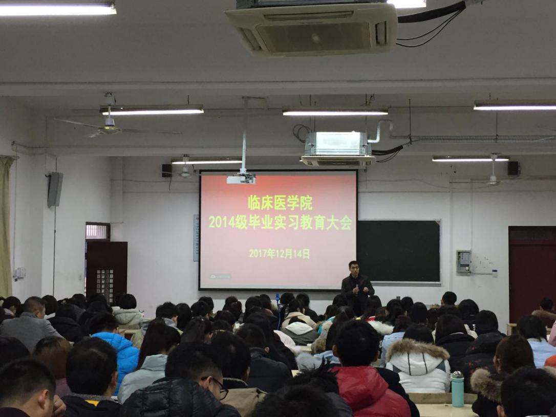 1126-124日,公司精心组织,扎实推进,依次完成了员工实习志愿填报、志愿收集、志愿分配等各项工作。为了帮助员工更好地明确实习目标、确定奋斗方向、助力员工成长,公司于1217日在赭麓校区召开毕业实习教育大会。会上,副经理李曙首先结合自己的实习和从教经历,向同学们强调了实习过程中要做好三个转变、注意四个安全、处理好若干关系,要求同学们要明确定位、提高段位、提升品位。随后,王平就毕业实习大纲、实习鉴定、科室轮转、实习月报表等事项重申实习具体任务和劳动纪律。最后,2017年全国临床技能大赛获奖选手叶世菲结合自己的参赛心路历程以及考研经历,与同学们进行了经验交流。