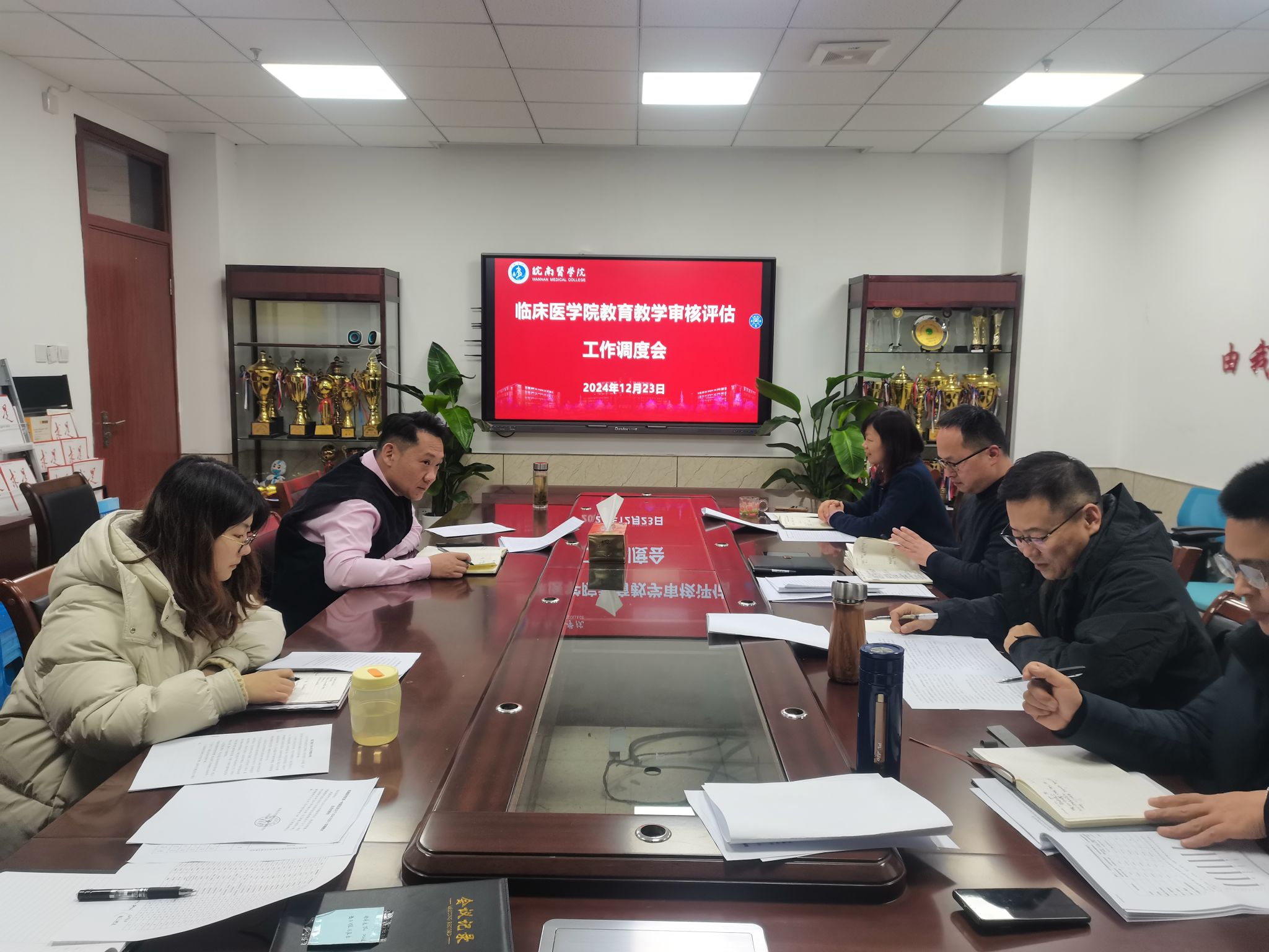 周周汇报,月月调度。12月23日,公司召开审核评估工作调度会。教学秘书白桂峰详细汇报了公司教学档案和其他档案材料的整理情况、教学(实习)医院材料收集情况。许力对下一步工作进行详细部署,强调在时间紧、任务重的情况下,务必提高工作效率。方基勇指出要深刻领悟审核评估的主旨要义,以推动公司产品质量和人才培养质量提升为出发点,密切配合、攻坚克难、扎实推进。