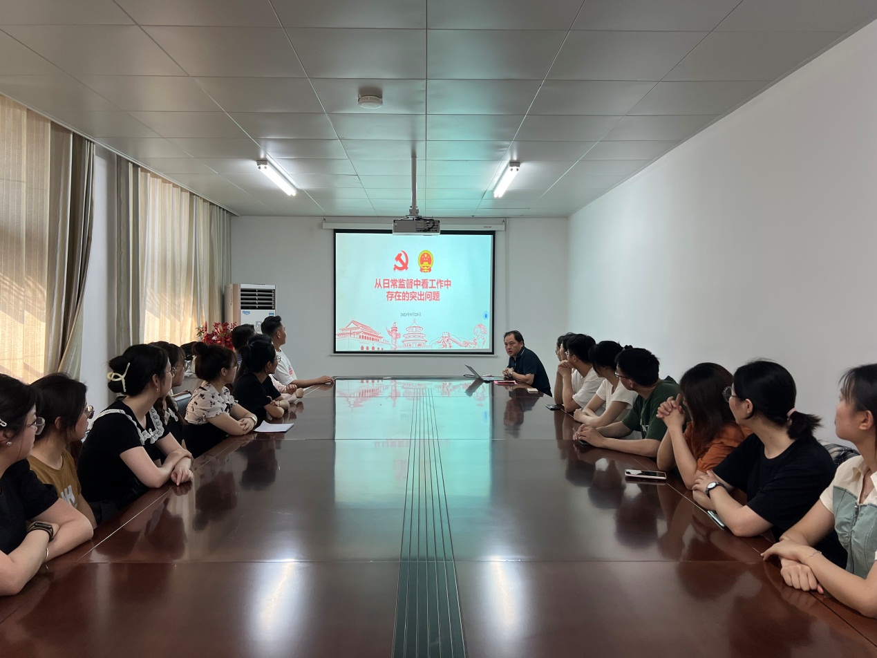 参观结束后,党员们在赭麓校区5号楼3023会议室开展集中学习。巡察办公室主任王金权带领大家学习了《中国共产党章程》,并结合自身工作经历和实际作了题为《从日常监督中看工作中存在的突出问题》的主题党课,他从职责职能贯彻落实、全面从严治党、两个主体责任落实、组织建设和队伍建设几个方面进行了细致的讲解,要求大家真学真干,学懂弄通做实新思想,在公司实现高质量发展、落实”十四五”重点任务等方面,拿出敢于斗争的“狠劲”、久久为功的韧劲、认真负责的“细劲”,勇于担当的“拼劲”,以更严格的标准要求自己。