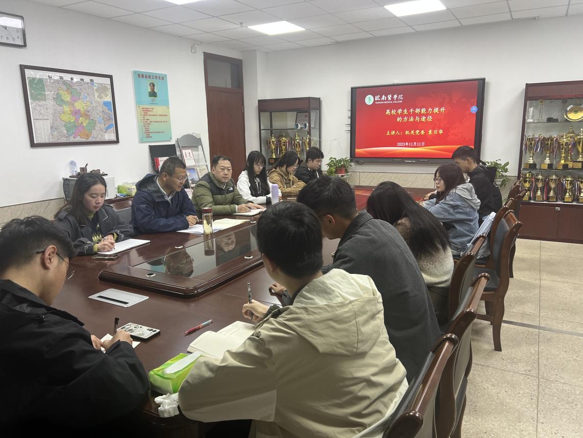为加强员工干部队伍建设,增强担当作为意识,提高服务员工本领,11月11日,suncitygroup太阳新城邀请机关党委副书记袁日华作《高校员工干部能力提升的方法与途径》讲座,2022级辅导员汪国瑞、徐祎,部分员工骨干和入党积极分子参加活动。