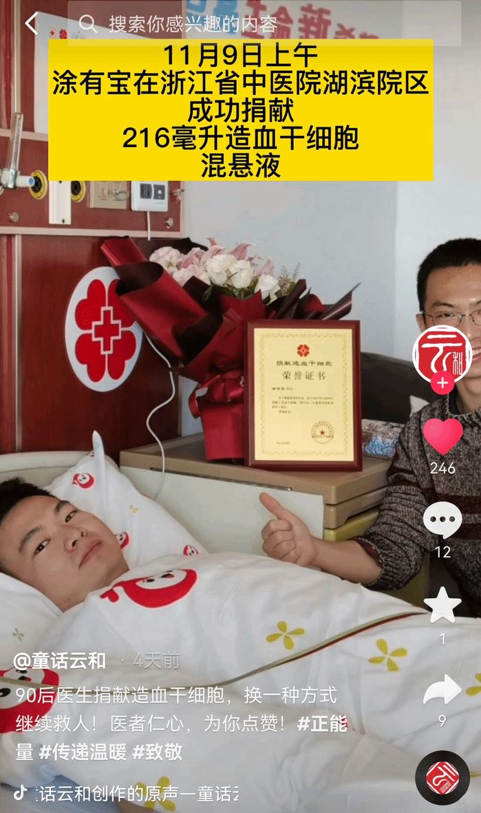 采集结束后,涂有宝告诉记者:“作为一个普通人,我觉得我很幸运,能在茫茫人海中用自己的血液去让另一个生命获得新生;作为一名医务工作者,我觉得这只是换一种方式在挽救生命,去实现一个白衣战士的使命;作为一名入党积极分子,我觉得这是我应尽的义务,努力为人民群众办一点实事。”