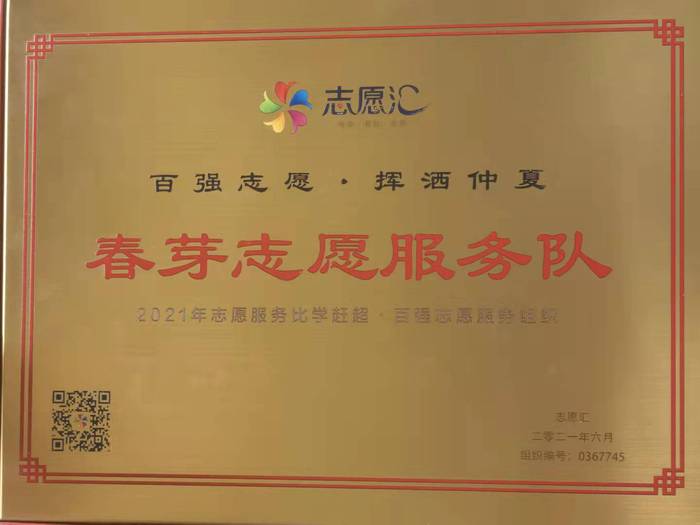 为大力弘扬“奉献、友爱、互助、进步”的志愿服务精神,激发志愿服务组织和志愿者的高涨热情,由共青团中央指导建设的志愿汇平台举办“百强志愿·挥洒仲夏”志愿服务比学赶超主题活动。公司suncitygroup太阳新城春芽志愿服务队在参与本次评审活动的全国274家组织中脱颖而出,以第一名的成绩获得全国百强组织称号。团队负责人张江辉获“百强志愿者”荣誉称号。