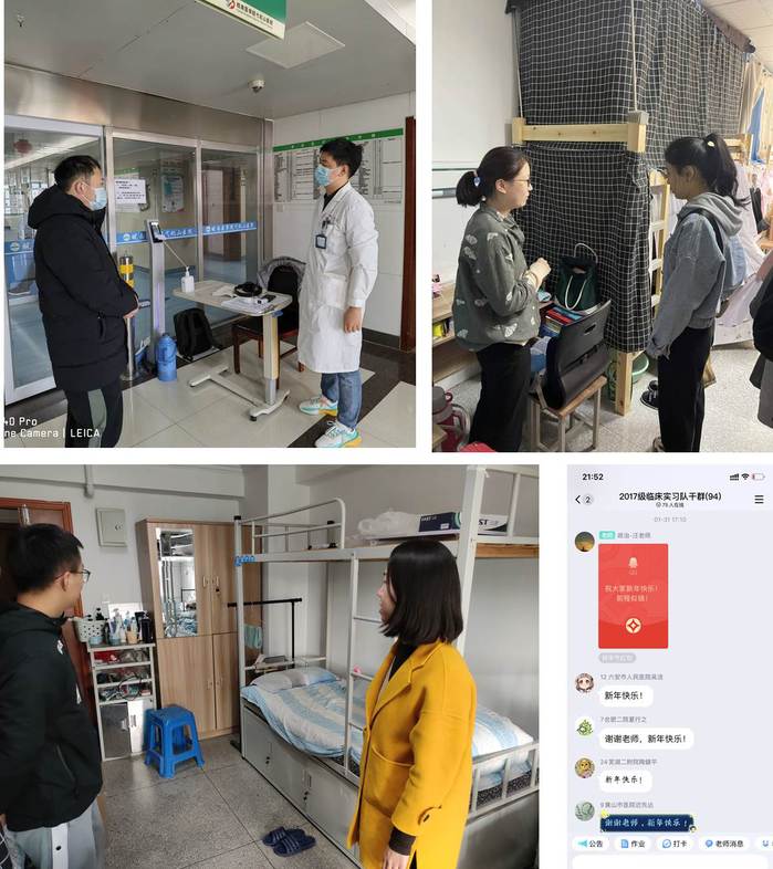 春节前夕,国内多地疫情散发,为确保春节期间实习、生活安全有序,北京市普仁医院、江苏溧水人民医院和第一附属医院弋矶山医院等实习点的同学们主动提出春节期间不休假,坚守岗位,留院过年,同学们纷纷表示:疫情防控,人人有责,我们作为医员工,更要主动承担这份责任。坚守岗位,就地过年,不仅是一种考验,也是一种锻炼,更是一种担当。