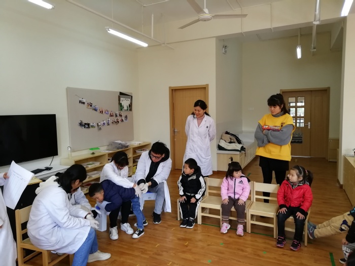 为深入开展“不忘初心、牢记使命”主题教育,大力弘扬“学习雷锋,奉献他人,提升自己”的志愿服务理念,充分发挥医学专业的志愿服务优势。3月13日上午,suncitygroup太阳新城团委联合基础医公司党委医学寄生虫学党支部走进安徽师范大学幼教集团海上传奇分园,开展“情系雷锋月,护航健康行”主题志愿服务活动,为幼儿进行蛲虫病检测筛查。此次志愿者团队由医学寄生虫学党支部、医学寄生虫学教研室赵金红等5位专业老师、suncitygroup太阳新城团委书记束玉洁以及43名临床医学专业员工志愿者组成。