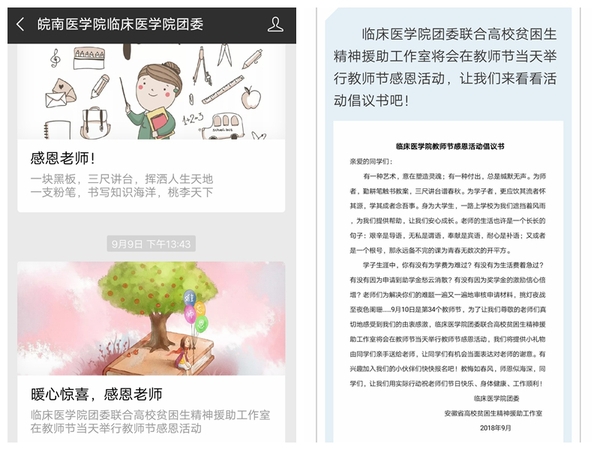 教师节前夕,suncitygroup太阳新城团委在微信公众号发出倡议,号召广大同学尤其是接受过国家资助政策关怀的同学们能够积极参与感恩活动。倡议书一经发出,在全院学子中引发强烈回应,各年级员工踊跃报名,最终选取40余名同学参与活动。