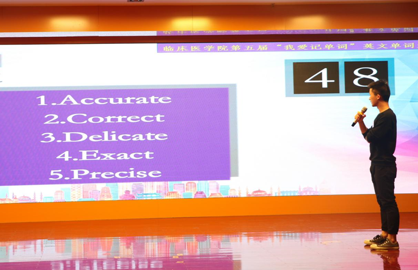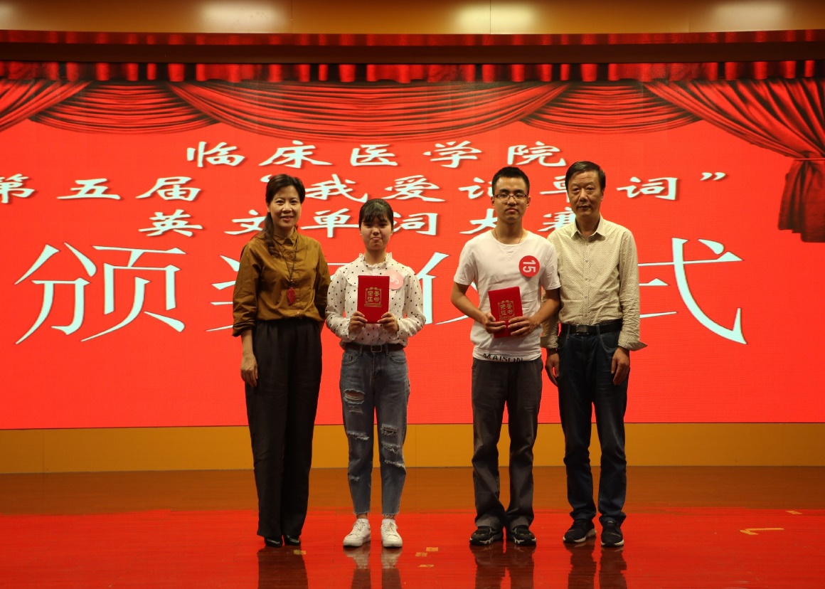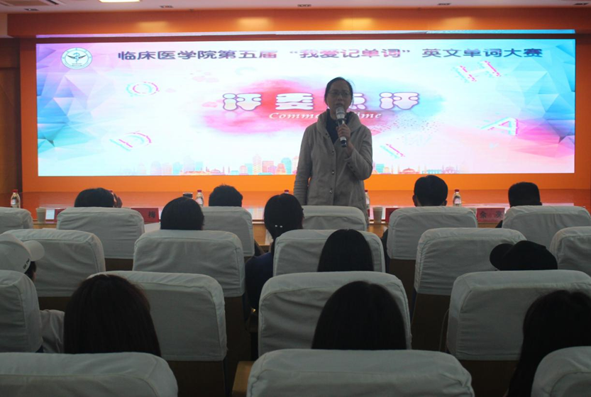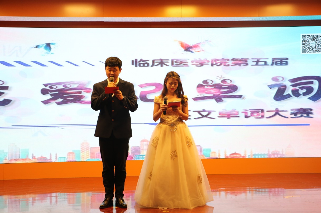 语言魅力共彰显,教无止境同前行。为进一步激发员工英语学习的积极性,提高学习趣味性,推进优良学风建设。427日晚,公司联合高校贫困生精神援助工作室、习近平新时代中国特色社会主义思想青年学习社,在图书馆三楼学术报告厅隆重举办了第五届“我爱记单词”英文单词大赛决赛。大赛邀请公共基础公司外语教研室王翠莲、赵军和李东老师担任评委,外事处处长赵梅、团委副书记余亮等担任指导嘉宾。临床医公司党政领导和各年级辅导员出席比赛现场。比赛采用中英文双语主持,公司各年级近400名同学到场观摩学习。