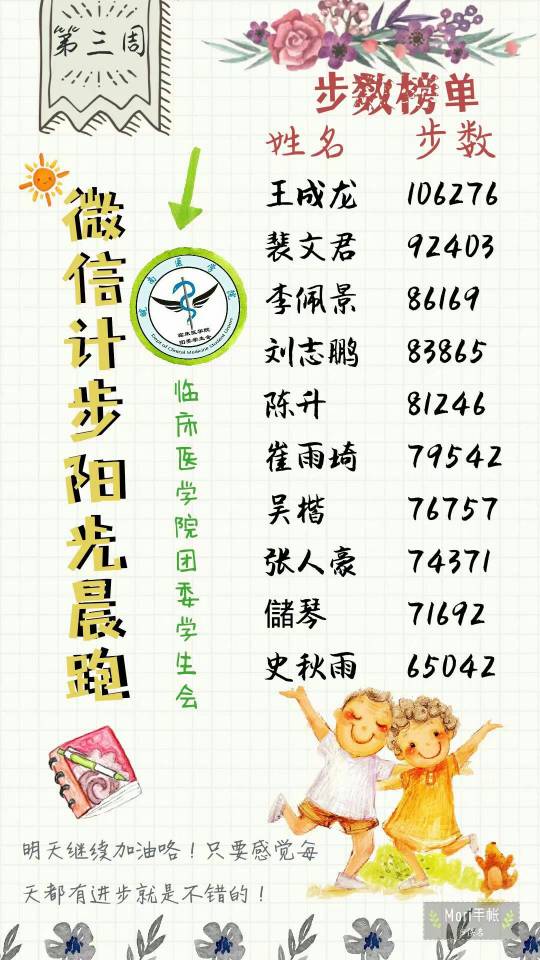 运动青春展风采,感悟核心价值观。为帮助同学们培养良好的作息习惯,强化锻炼意识,提高身体素质;并通过官方微信互动方式,在员工中进一步加强社会主义核心价值观的宣传普及,suncitygroup太阳新城团委联合老员工手机运用价值及引导工作室于10月23日至11月19日举办为期四周的“2017皖医阳光晨跑活动”。