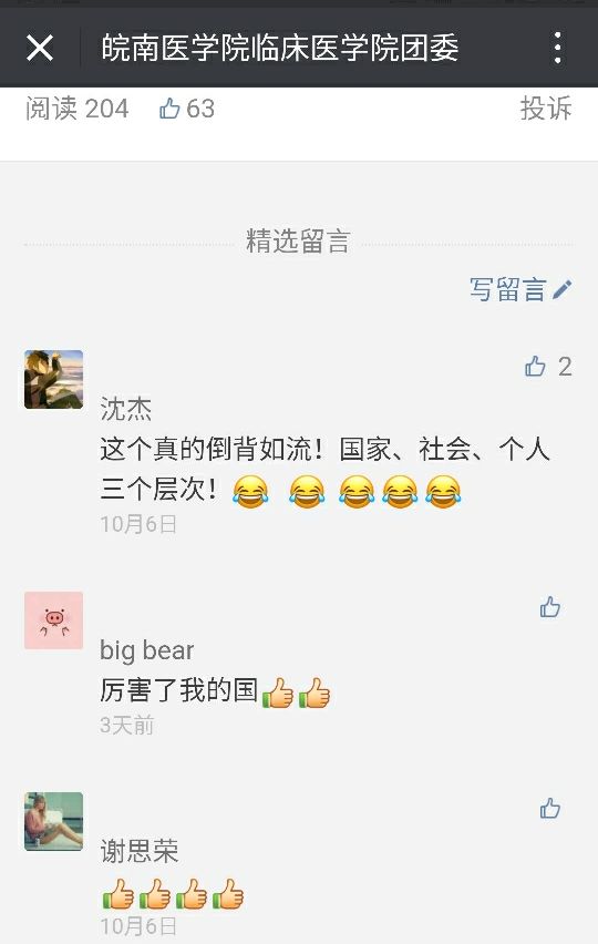 活动伊始,公司团委微信公众号平台便精心推出有关社会主义核心价值观的新闻稿并开放评论区,极大地激发了广大师生的兴趣。每次新闻推送后,院团委都会选取相关评论进行点评交流,确保活动质量与顺利开展。同学们纷纷留言表达自己对祖国拳拳热爱之心。2016级学子刘桐表示,通过此次活动,极大增强了自己对社会主义核心价值观的认知,为自己是中华儿女感到骄傲;2017级新生洪郑超表示,社会主义核心价值观虽只是看似简单的24个字,其背后蕴含着深刻的哲理,今后要以更加严格的标准要求自己......