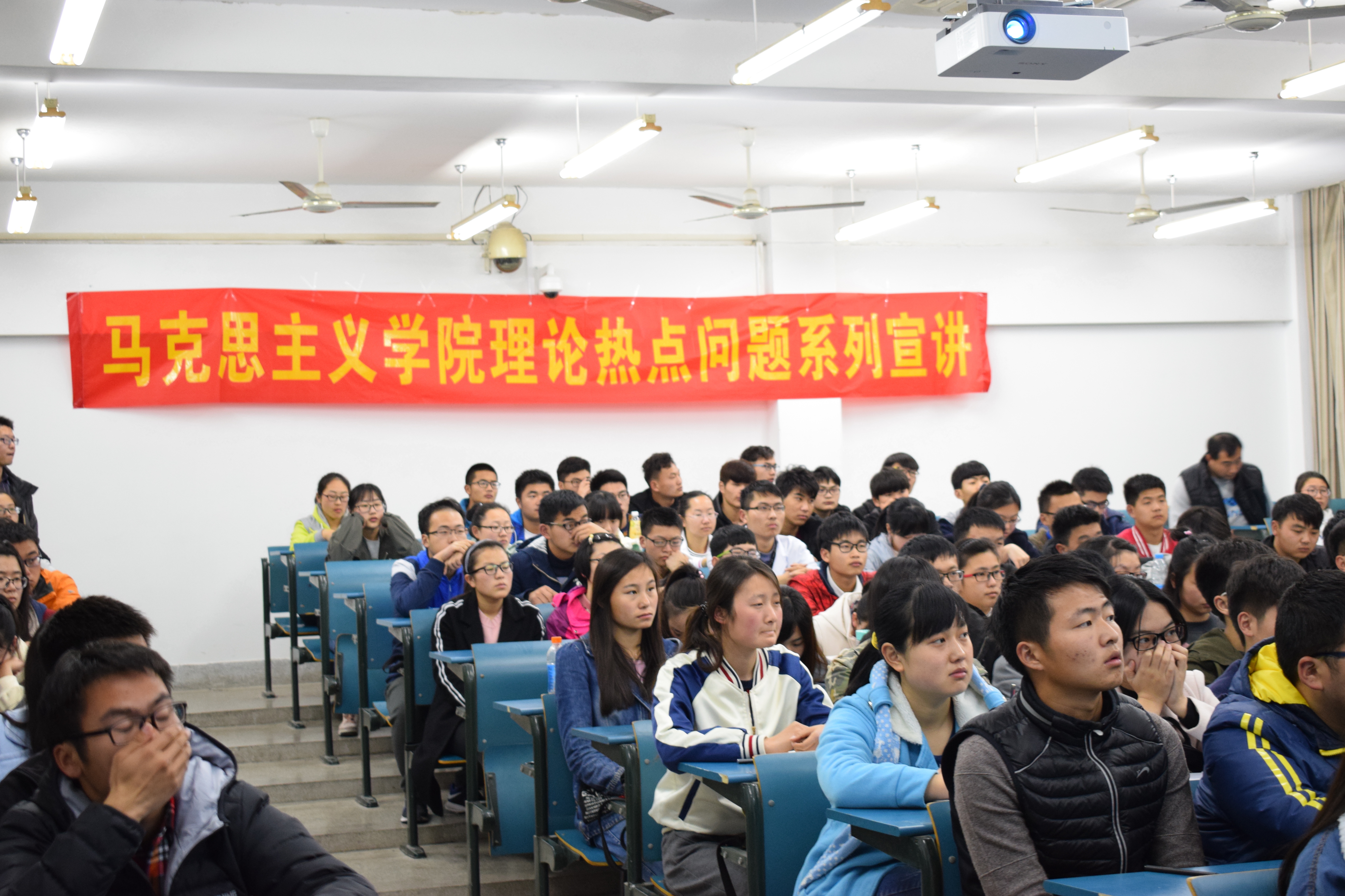 回顾历史,展望未来。为进一步树立和践行社会主义核心价值观,强化理想信念教育,suncitygroup太阳新城于2017年3月9日晚七点在1504教室举办了核心价值观教育讲座——党的十八届六中全会以来的理论热点宣讲。本次讲座诚邀到马克思主义公司汪一江教授主讲,临床医公司党务工作秘书束玉洁、员工第五党支部书记张海涛以及员工第五党支部入党积极分子和2016级全体团支部书记共计150余人聆听了讲座。
