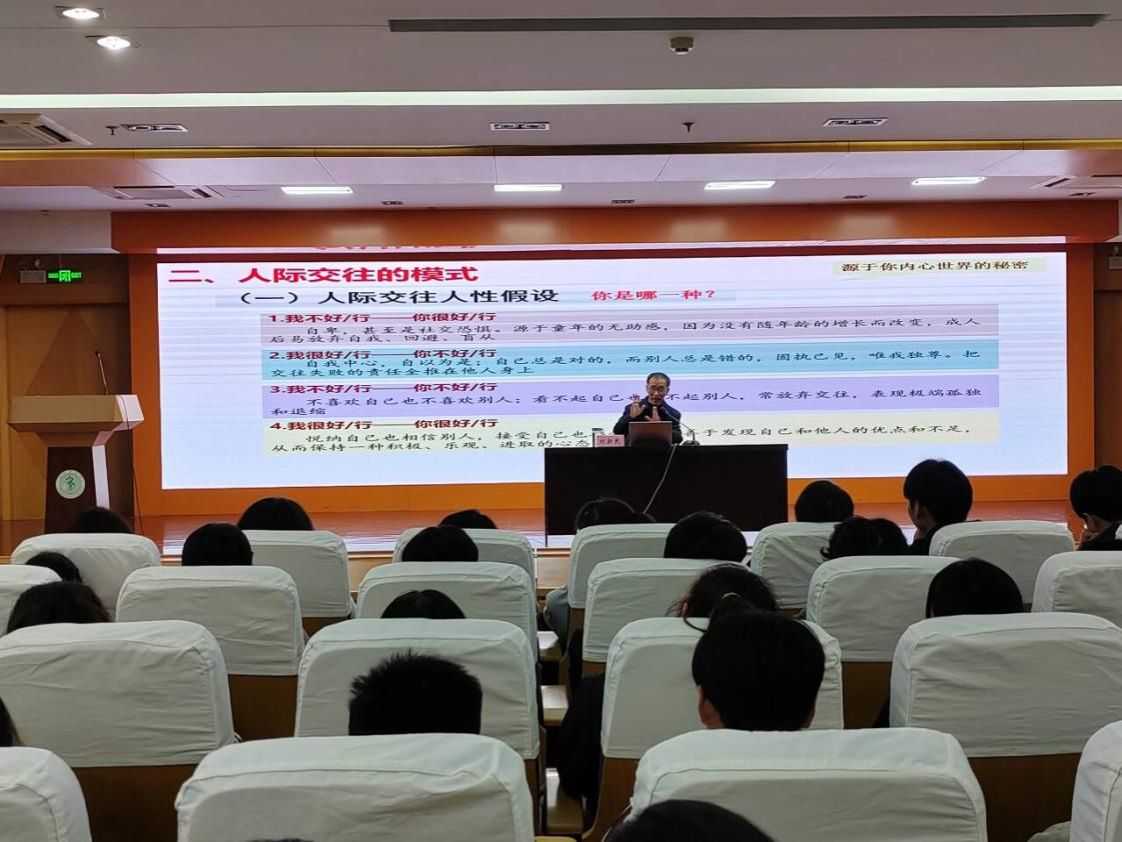 12月5日晚,刘新民教授在图书馆三楼报告厅为2022级员工作题为“人际交往的方法与技巧”的专题讲座。讲座中,刘新民阐述了人际交往的要素及模式,强调了人际交往的重要性,并以“如何介绍别人”“如何打电话”“如何握手”等常见人际交往方式,阐述了人际交往的谈话技巧、行为规范和态度。最后,他结合人际交往与沟通中的案例,带领同学们分析了老员工人际交往中存在的常见问题和解决对策,为同学们正确处理好与家长、老师、同学、恋人等之间的人际关系提供思路和方法。