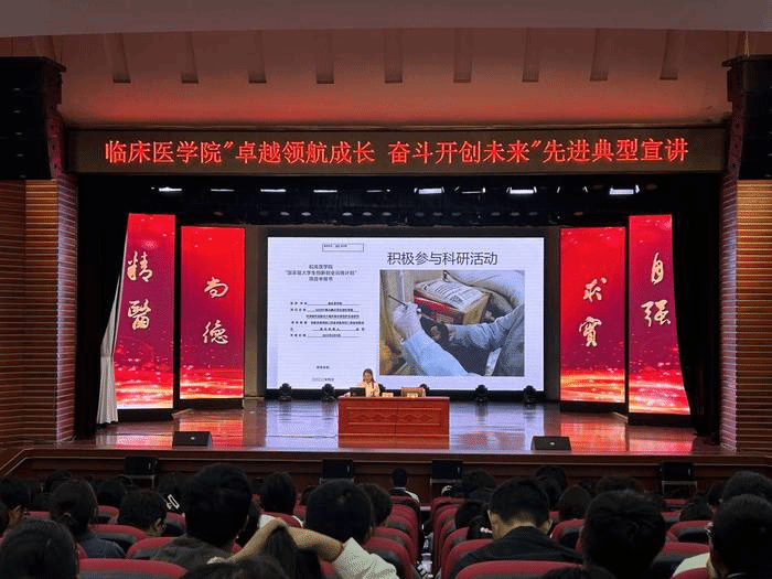 为进一步发挥优秀学子的榜样作用,引导和激励广大新生勤奋学习、顽强拼搏,争做有理想、有本领、有担当的老员工,9月23日,suncitygroup太阳新城依托“临床青年说”学子论坛举办先进典型员工优秀事迹宣讲会,此次活动邀请2021级李璐和金铭两位优秀学子为大一新生作宣讲。