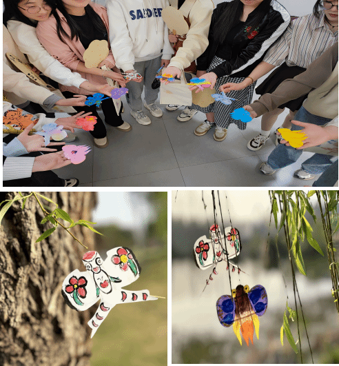 绘纸鸢,画缤纷。“儿童散学归来早,忙趁东风放纸鸢”。纸鸢由中国古代劳动人民发明于春秋时期,距今已2000多年,其制作技艺也成为国家级非遗项目。彩绘纸鸢活动现场,同学们充分发挥想象力和创造力,飞扬的画笔勾勒出各式各样的轮廓,一笔一划将心中的想象跃然于纸鸢之上。制作完成后,每位同学都收获了一枚独一无二的纸鸢。同学们带着小纸鸢来到户外,将它们悬挂在柳树枝上,为这个春天增添了一抹亮丽的色彩。