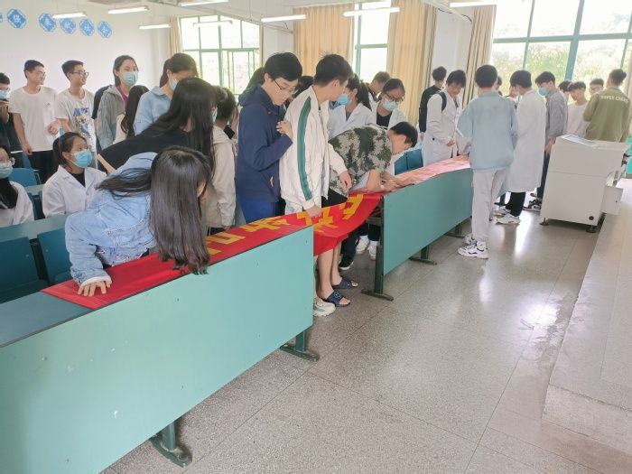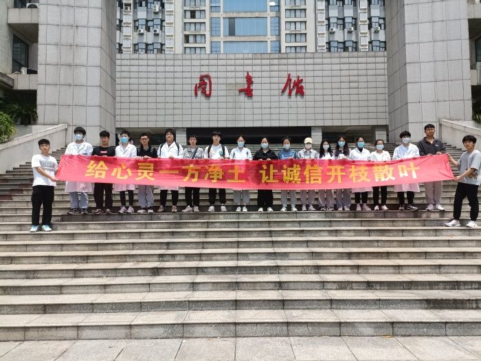 5月17日,2021级在1101教室开展“给心灵一方净土,让诚信开枝散叶”签名活动,积极号召同学们自觉做到诚实守信。签名活动受到同学们的广泛关注,他们纷纷在横幅上签下自己的名字,并郑重作出“诚信做人、诚信做事”的承诺。