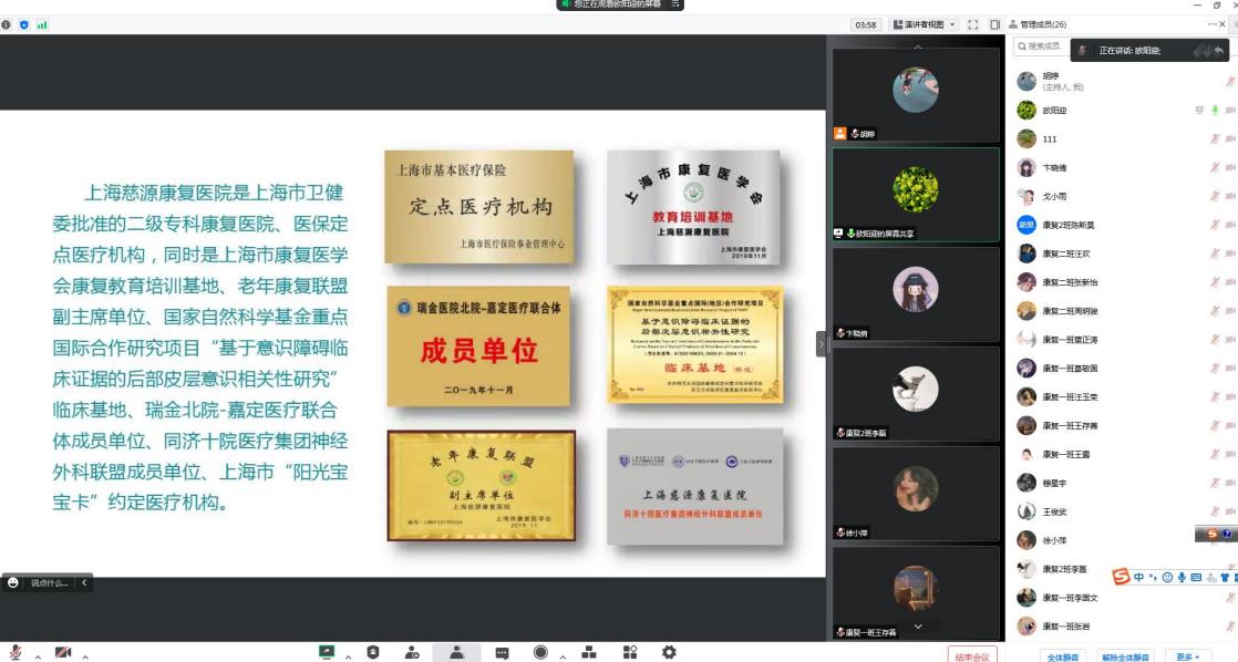 随后,上海慈源康复医院开展线上实习、就业宣讲会,从医院医疗工作、病区概况、康复中心规模、人员团队、教学科研、实习生培养等方面进行了详细介绍,并现场为员工进行答疑,共有36名康复治疗学专业员工参加宣讲会。