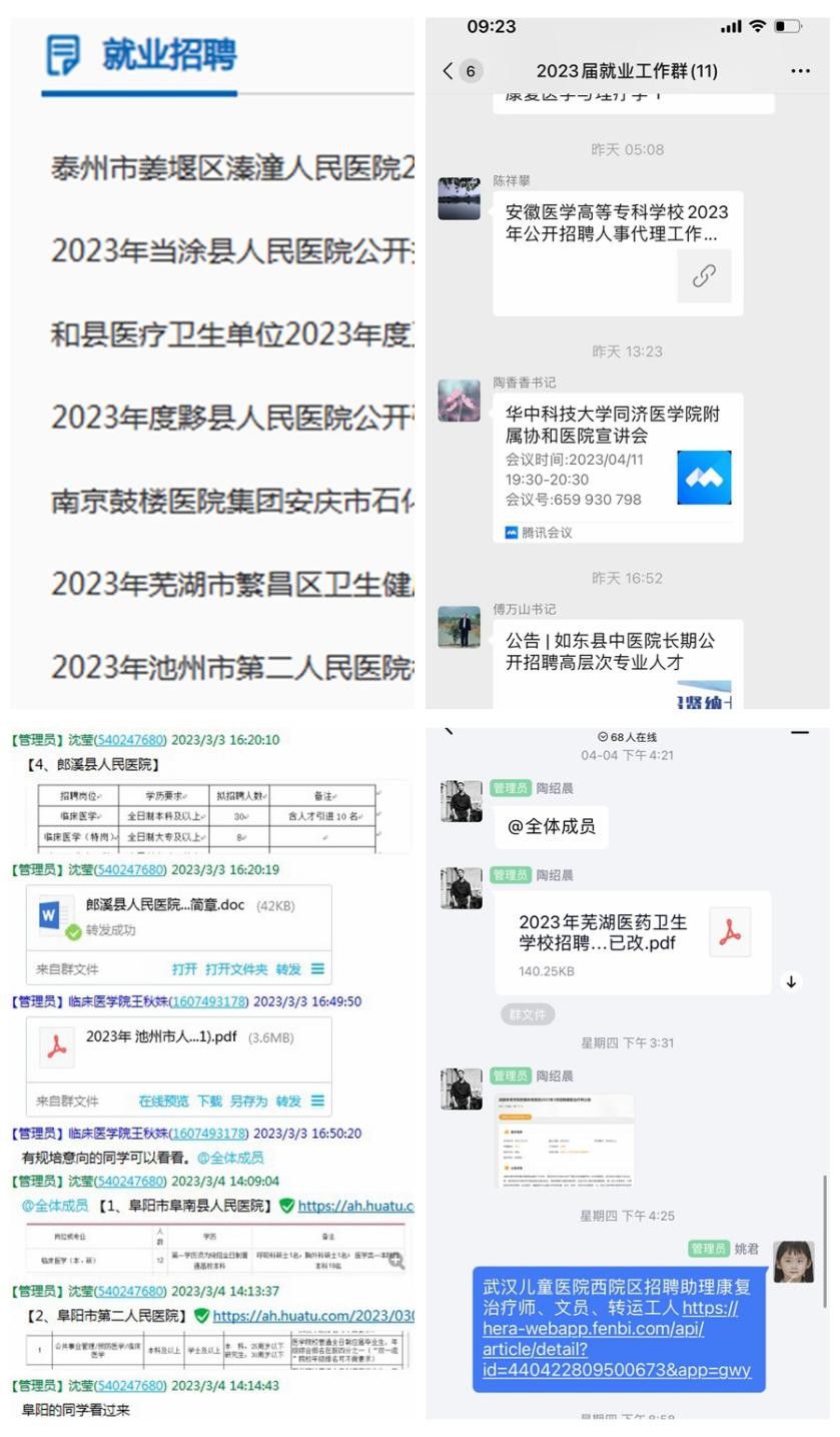 公司安排专人通过公司就业网站、微信群、QQ群等平台,及时向毕业生发布用人单位招聘信息、研究生复试调剂信息,认真组织临床医学专业和康复治疗学专业毕业生返校参加校园招聘会,公司领导班子、毕业班辅导员、秘书前往招聘现场为毕业生提供就业指导和咨询服务,已组织毕业生410人次返校参加校园招聘会,截止目前公司毕业生去向落实率为51.5%。