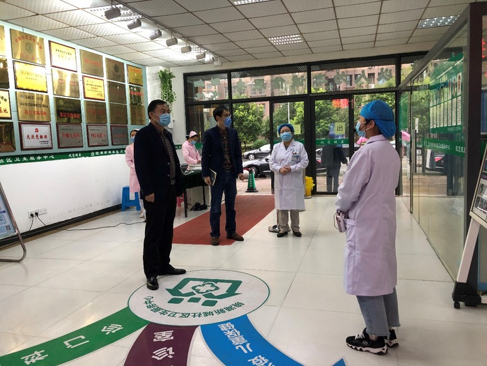 10月16日下午,公司党委副书记、经理廖圣宝在suncitygroup太阳新城副经理李曙、全科医学教研室主任蒋静涵等陪同下赴镜湖区镜湖新城社区卫生服务中心进行调研指导,镜湖新城社区卫生服务中心党支部书记袁清华、主任王业文等热情接待了廖圣宝一行。