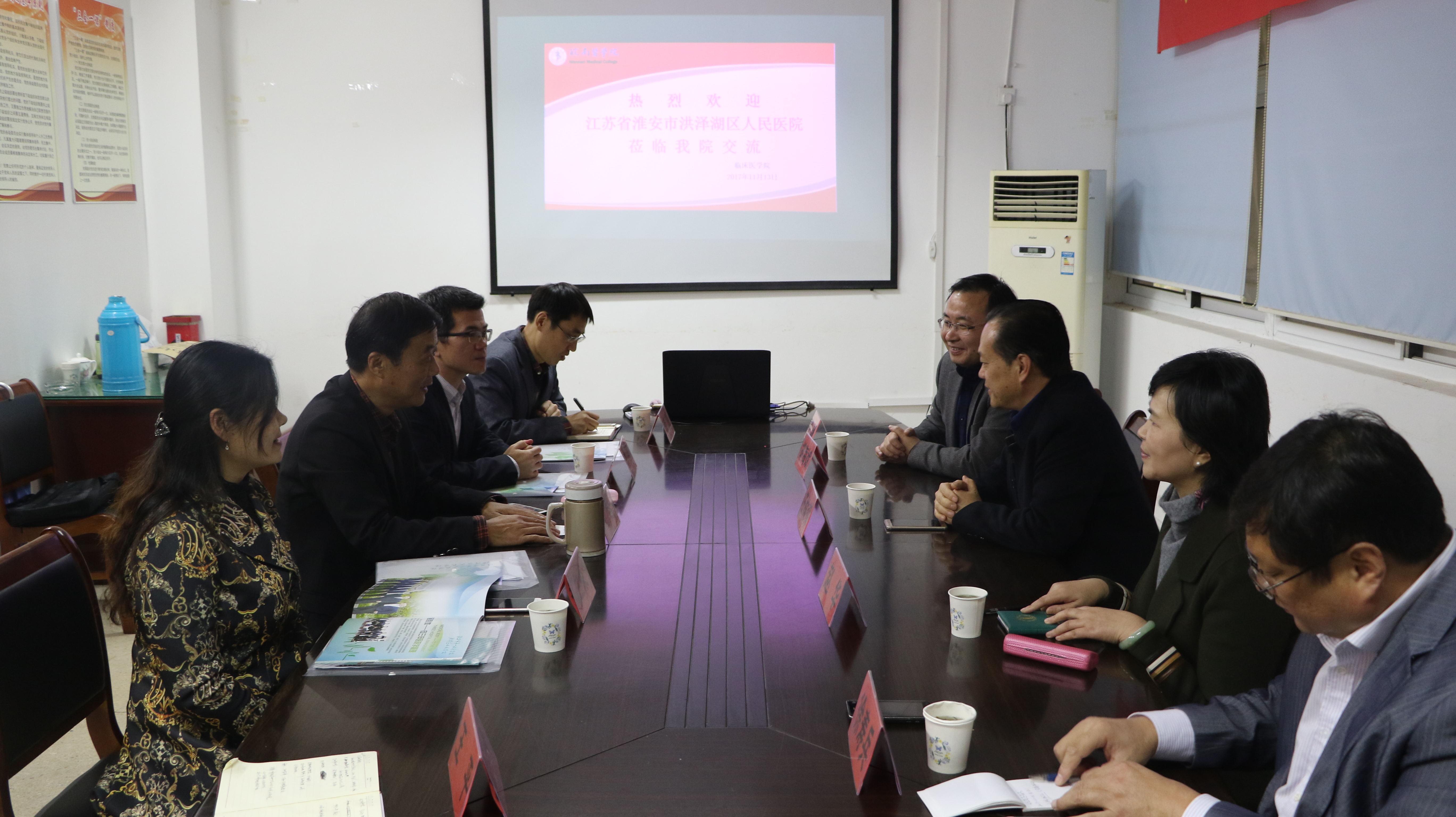 11月14日,江苏省淮安市洪泽区人民医院经理王林森、副经理赵华等一行4人来suncitygroup太阳新城交流工作,临床医公司党委书记刘群、副经理李曙在公司会议室接待了来宾,教务处处长郑兰荣、药公司经理韩军参加会议。