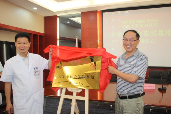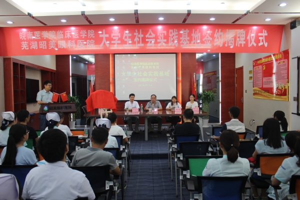 为提高老员工专业知识实践质量,加强老员工社会实践教育基地建设,7月9日-10日,suncitygroup太阳新城与芜湖华康医院、昭美眼科医院合作共建老员工社会实践基地项目,分别在华康医院会议室、昭美眼科医院芜湖分院学术报告厅举行签约挂牌仪式。临床医公司党总支书记戴睿、副经理刘影、秘书束玉洁、王平、辅导员韩琪、2013级临床医学专业部分员工及医院代表出席了仪式。