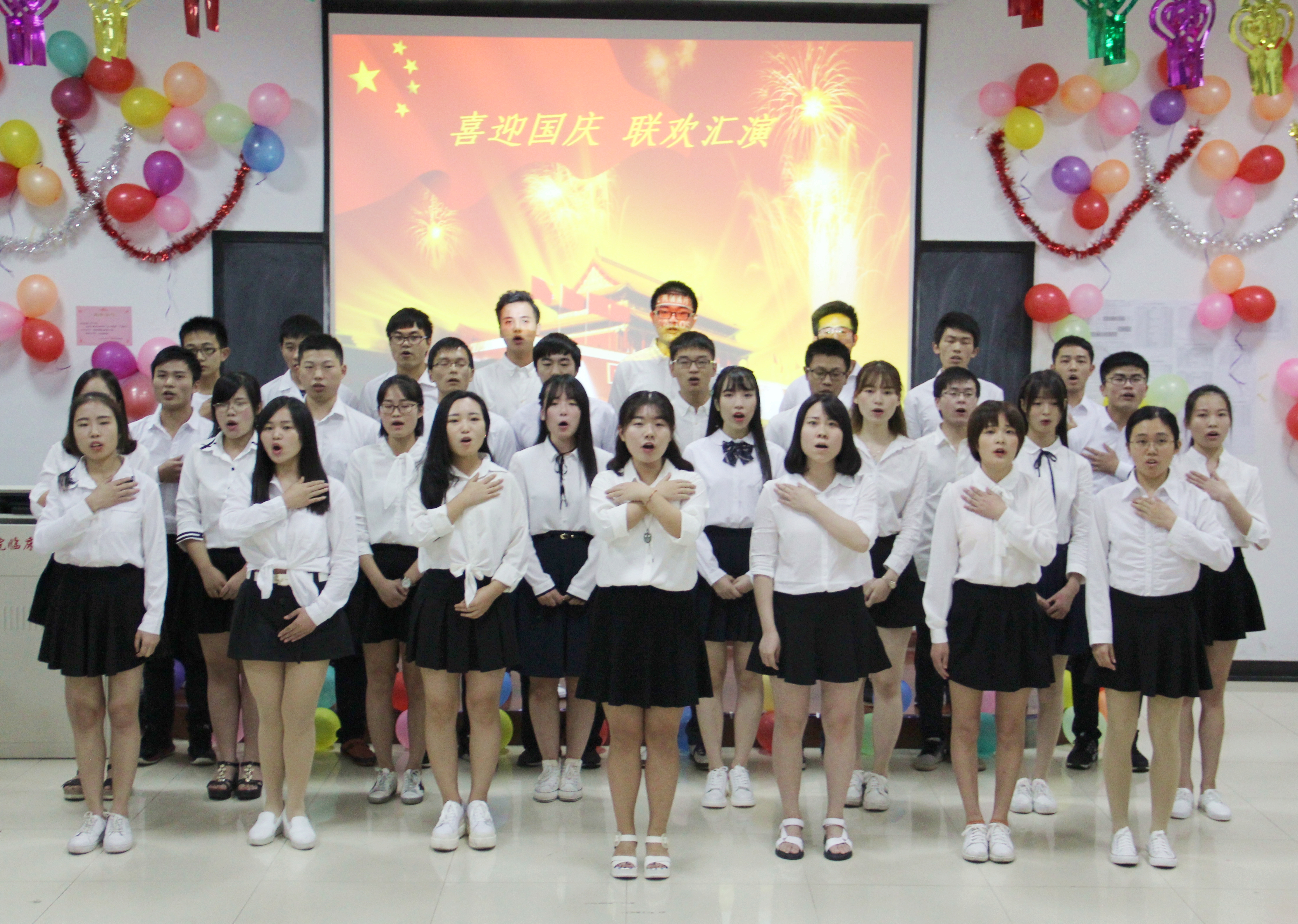 9月28日下午16时30分,解放军一〇五医院2013级临床公司举办了迎国庆文艺联欢晚会,喜迎“十一”国庆节的到来。临床公司马嘉主任、高妍老师、汪环老师等受邀和同学们一同观看了演出。