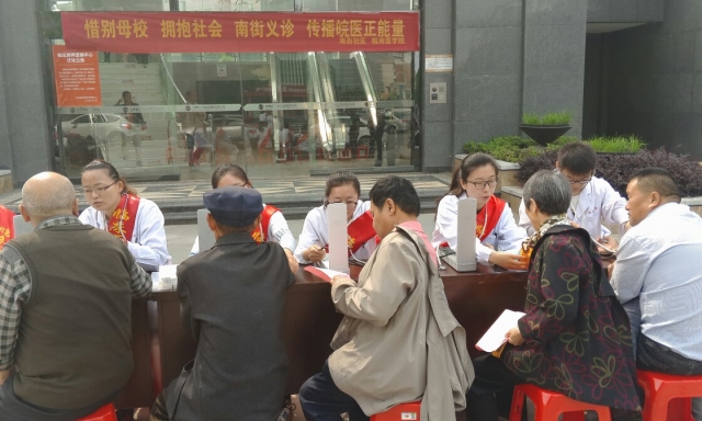 5月14日上午8点整,suncitygroup太阳新城2011级员工第五党支部20名党员代表在杨海峰同学的带领下,来到芜湖南街社区开展文明离校系列活动之社区义诊,闻讯赶来的社区居民络绎不绝,支部的志愿者们为社区居民测血压、测体重身高、体格检查、普及宣传医疗健康知识及发放暑降温物品。同时,近段时间江城满城飞絮,志愿者们及时的向居民提供了医用口罩。志愿者们体贴的操作,耐心的讲解,感染了在场的每一个前来参加义诊的人。社区居民的赞扬让志愿者们感受到了浓浓的幸福感和重大的社会责任感,也增强了即将从事医疗工作的志愿者治病救人,服务社会的决心。