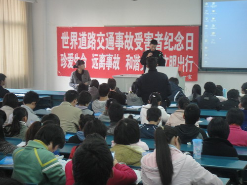 为提高员工交通安全意识,11月28日,医学一系2010级邀请芜湖市交警支队的两名交警来校开展交通安全知识普及活动。