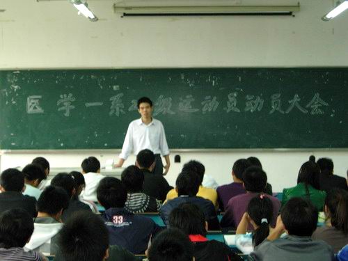 为激励鼓舞运动员的斗志,增强比赛信心,激发赛前训练的热情,11日中午,医学一系2009级在2号教学楼104教室召开了赛前动员大会,年级辅导员万磊、伍长娟及全体运动员参加了动员会。