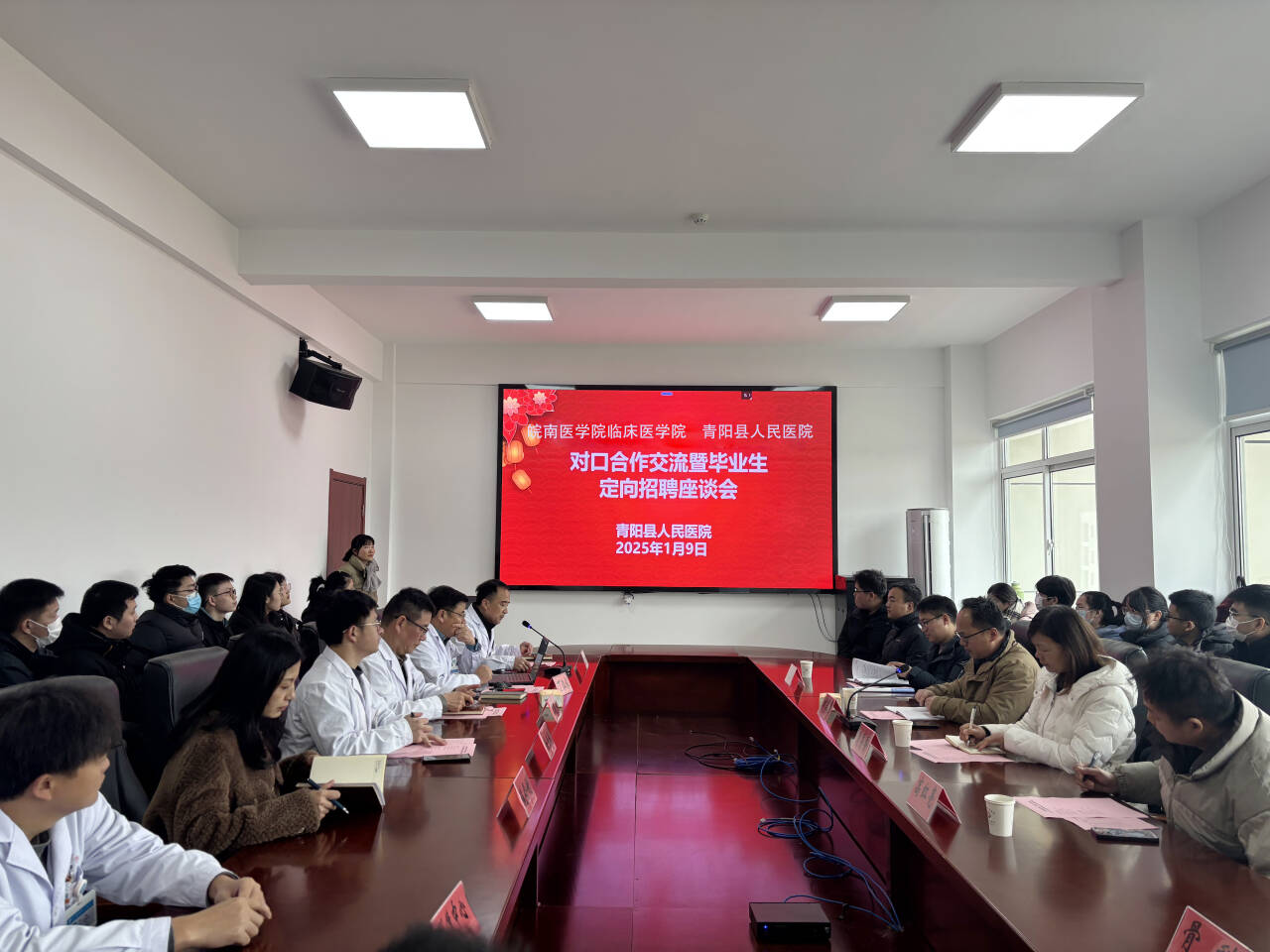 洽谈会上,青阳县人民医院经理丁江水就医院基本情况、发展规划、人才引进政策及2025年招聘计划等内容进行了详细介绍,表达了对优秀医学人才的迫切需求,希望双方进一步加强合作交流。医院骨科、影像科、心内科、检验科、外科负责人分别介绍了科室情况。方基勇就公司基本情况、专业建设、毕业生情况等方面进行了介绍,并推介了临床医学专业毕业生。