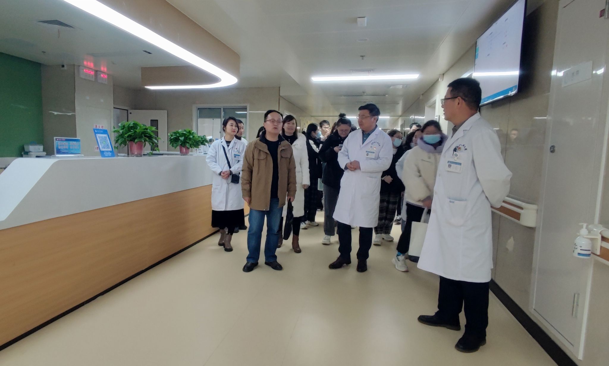 洽谈会后,青阳县人民医公司党委书记王晓为、经理丁江水、副经理徐良斌带领师生实地参观了医院新院区门诊大楼、住院部等相关诊疗设施和环境。通过实地参观走访,同学们对医院干净舒适的医疗环境、先进的硬件设施、积极向上的医院文化有了更直观认识。