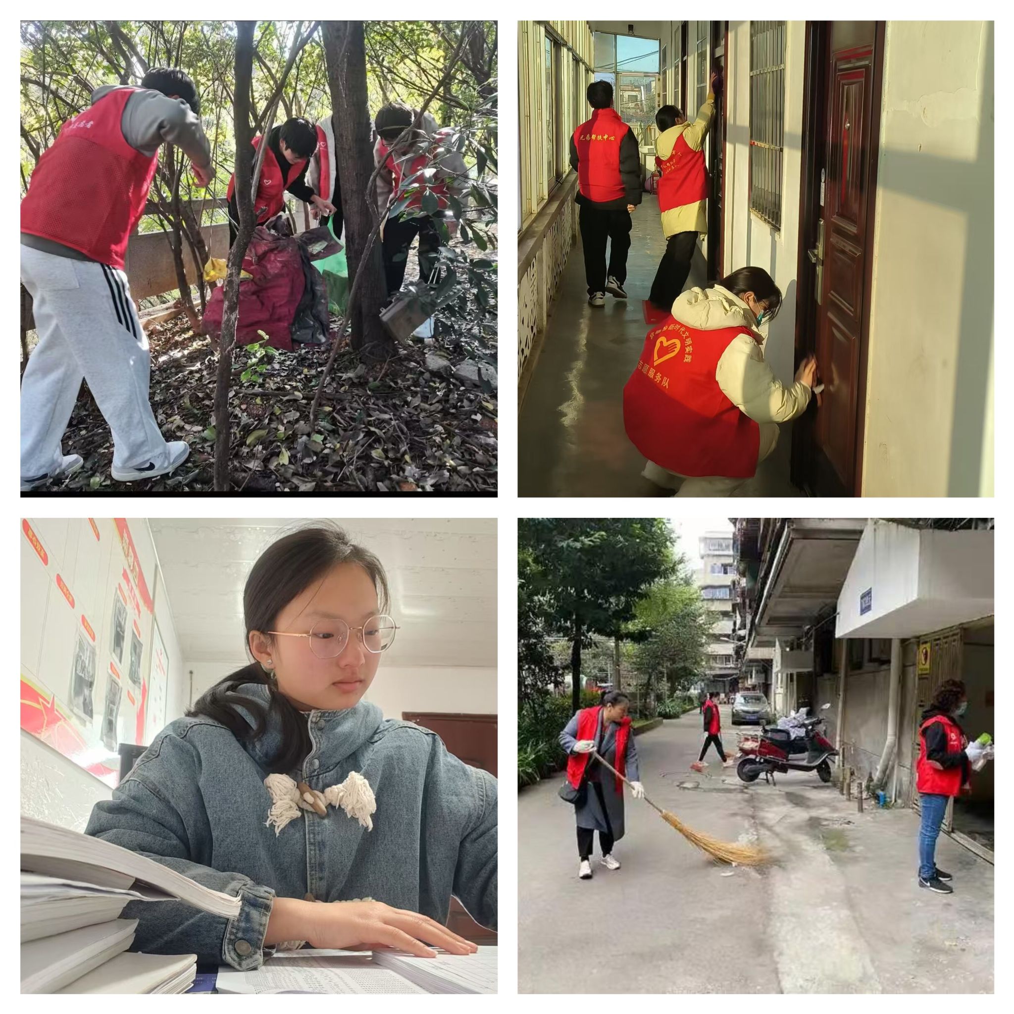 返乡调研,服务乡村发展。“微尘”志愿队临泉县、池州市分队的志愿者以“锤炼社会能力,深入基层办实事”为主题,积极开展村委会实习、居民意见调查、小范围环境整改以及春联“上门”送温暖等活动,让志愿服务扎根在基层,让青春之花开在实处。