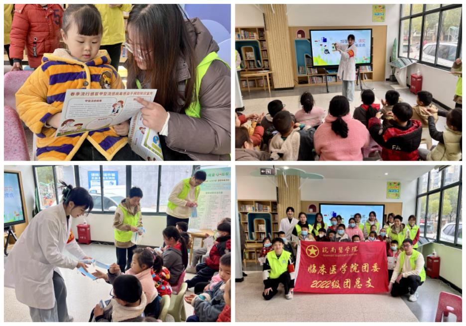 “践”有力度,注重躬身实践,突出实干担当。3月15日,志愿队走进白马书院开展“春季传染病预防”主题宣讲活动。志愿者根据幼儿年龄特点,运用形象直观的图片与案例,向小朋友们介绍了手足口病、流感等春季常见传染病的种类、症状、传播途径和预防措施,并带领孩子们通过“内外夹弓大立腕”七步韵律操掌握科学洗手技巧。宣讲结束后,志愿者给小朋友们分发疾病宣传册和口罩,提醒幼儿养成良好的个人卫生习惯,为幼儿健康成长构筑免疫屏障,彰显临床学子实干担当。