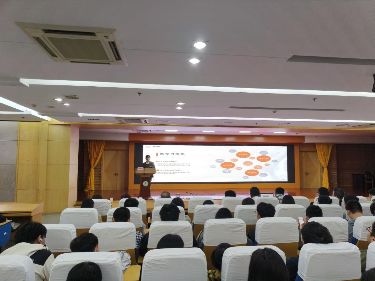 周舒扬从医学可视化简介、医学可视化科研配图技巧及医学可视化在商业、临床和科研中的应用等方面,向同学们介绍了医学可视化的核心价值和未来方向。他通过展示医学插画、播放医学可视化视频等方式,向同学们展示了医学可视化在医学知识学习、疾病诊疗等方面的优点。