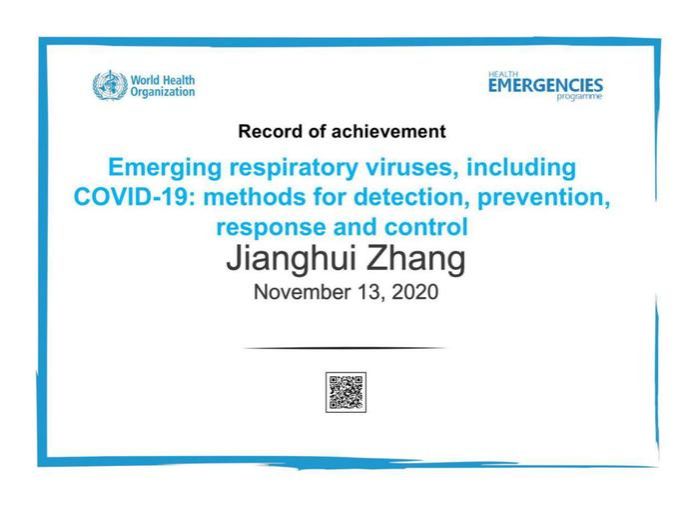 团队成员参加WHO培训的结业证书