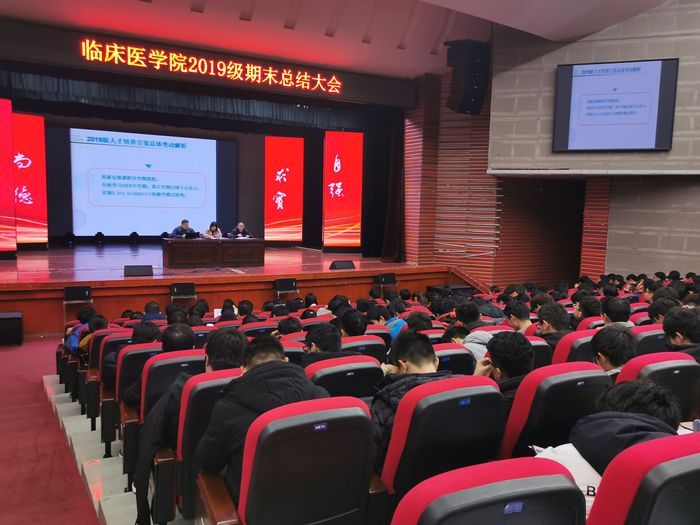 随后,宋默涵从临床医学专业培养方案修订思路、人才培养方案修订流程等方面向同学们详细地介绍了《suncitygroup太阳新城临床医学专业本科人才培养方案(2019版)。康贝贝从 “回顾与收获”、“安全教育”、“考风考纪”、“辅修”、“寒假及开学注意事项”等五个方面工作逐一展开叙述。陶绍晨为同学们详细解读了2020年寒假社会实践活动和老员工创新创业等相关文件。最后,两位辅导员老师鼓励全体,在新的学期要以崭新的面貌、饱满的热情、昂扬的精神气迎接好未来的挑战,并向大家送上了暖心的新年祝福!
