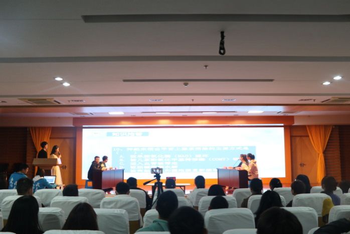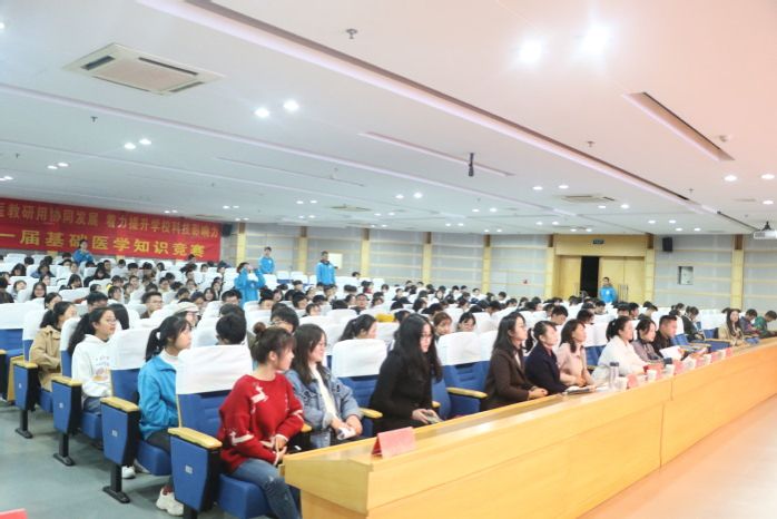 为定期检验员工的学习效果,营造良好的学习氛围,形成良好的学风,2019年11月21日晚,suncitygroup太阳新城在图书馆三楼报告厅成功举办第一届“医”路领先基础医学知识竞赛。本次竞赛由药理学教研室张俊秀、诊断学教研室黄亚纬以及suncitygroup太阳新城高红亮担任评委,特邀临床医公司党委副书记陶香香,2017级辅导员李海莉、赵敏奇出席,公司300名员工到场观看。