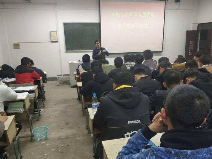 11月21日晚7时,淮安市洪泽区人民医院管理顾问赵华带队一行四人在赭麓校区1201教室举行医院进校院宣讲活动会,suncitygroup太阳新城副经理李曙出席了本次会议,2016级临床医学专业200余位同学参加了此次宣讲会。