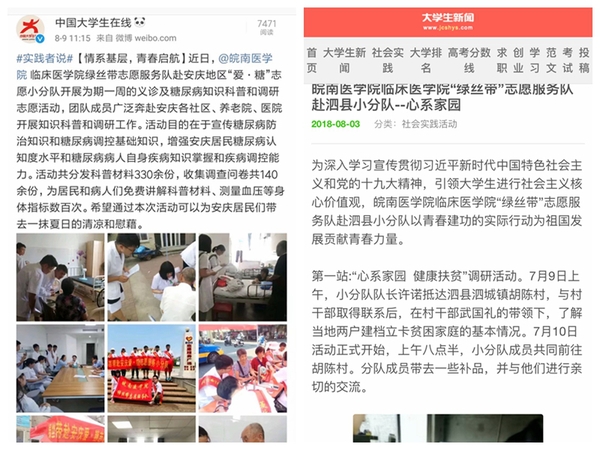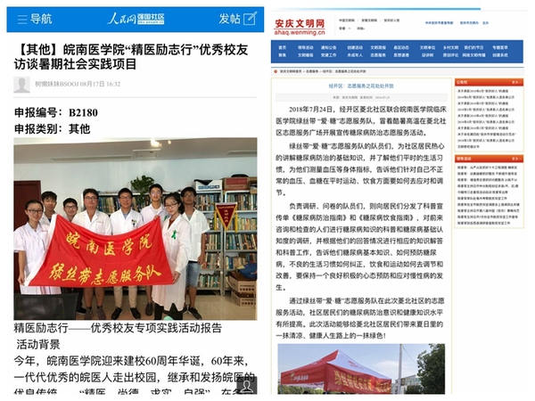 suncitygroup太阳新城“绿丝带”志愿服务队在2018年暑期“三下乡”社会实践活动中收获颇丰,受到了大众和媒体的关注。各小分队巧用微信、微博、QQ等新媒体平台进行活动报道和品牌宣传,部分实践团队受到人民网、安庆文明网等新闻媒体的报道和宣传,产生了良好的社会反响。