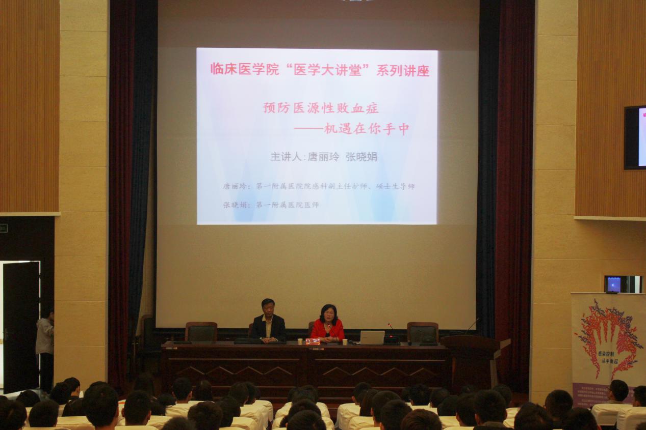 2018年5月8日上午,suncitygroup太阳新城邀请公司第一附属医院感染管理科主任、副主任护师、硕士生导师唐丽玲所带领的团队,在逸夫科技楼一楼报告厅举办了主题为“预防医源性败血症——机遇在你手中”的专题报告。公司党政领导、实验中心青年教师、2017级辅导员和2017级员工代表到场聆听。公司党委书记刘群主持报告会。