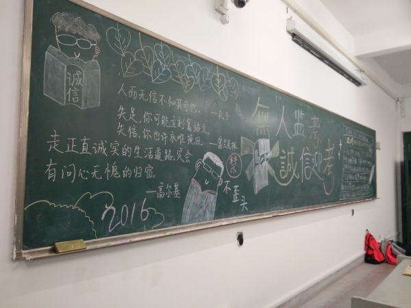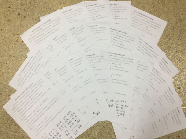 在公司和年级的倡议下,经班级主动申请,12月9日晚7:00-8:00,suncitygroup太阳新城2015级11班、12班在1403教室进行了《马克思主义基本原理概论》无人监考考试。考试开始前,辅导员汪楠楠宣读《suncitygroup太阳新城考场规则(修订)》,叮嘱考生遵守考场秩序,并预祝同学们取得好成绩。考试过程中,考场秩序井然,考生答题专注,态度端正,无人作弊。考试结束后,随着考生有序地交卷离场,本次无人监考考试圆满结束,同学们顺利接受了对知识和人格的双重考核。
