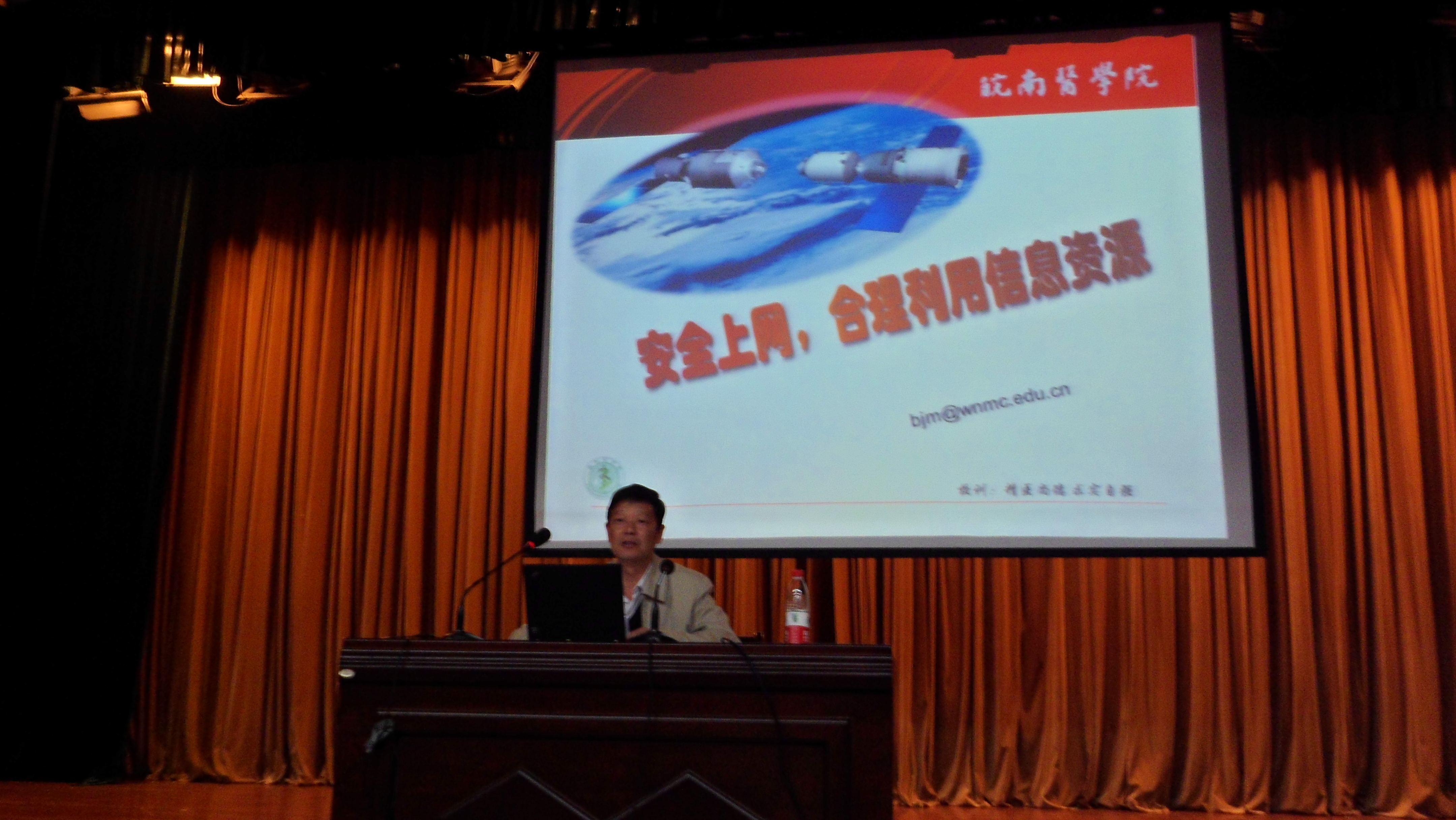 为了让同学们更好地了解、利用网络资源,在校关工委统一指导协调下,医学一系关工委于邀请校“五老”报告团成员、医学二系党总支副书记白家明老师于10月27日晚在老员工活动中心为医学一系2011级同学进行了一次“安全上网,合理利用信息资源”的专题讲座。