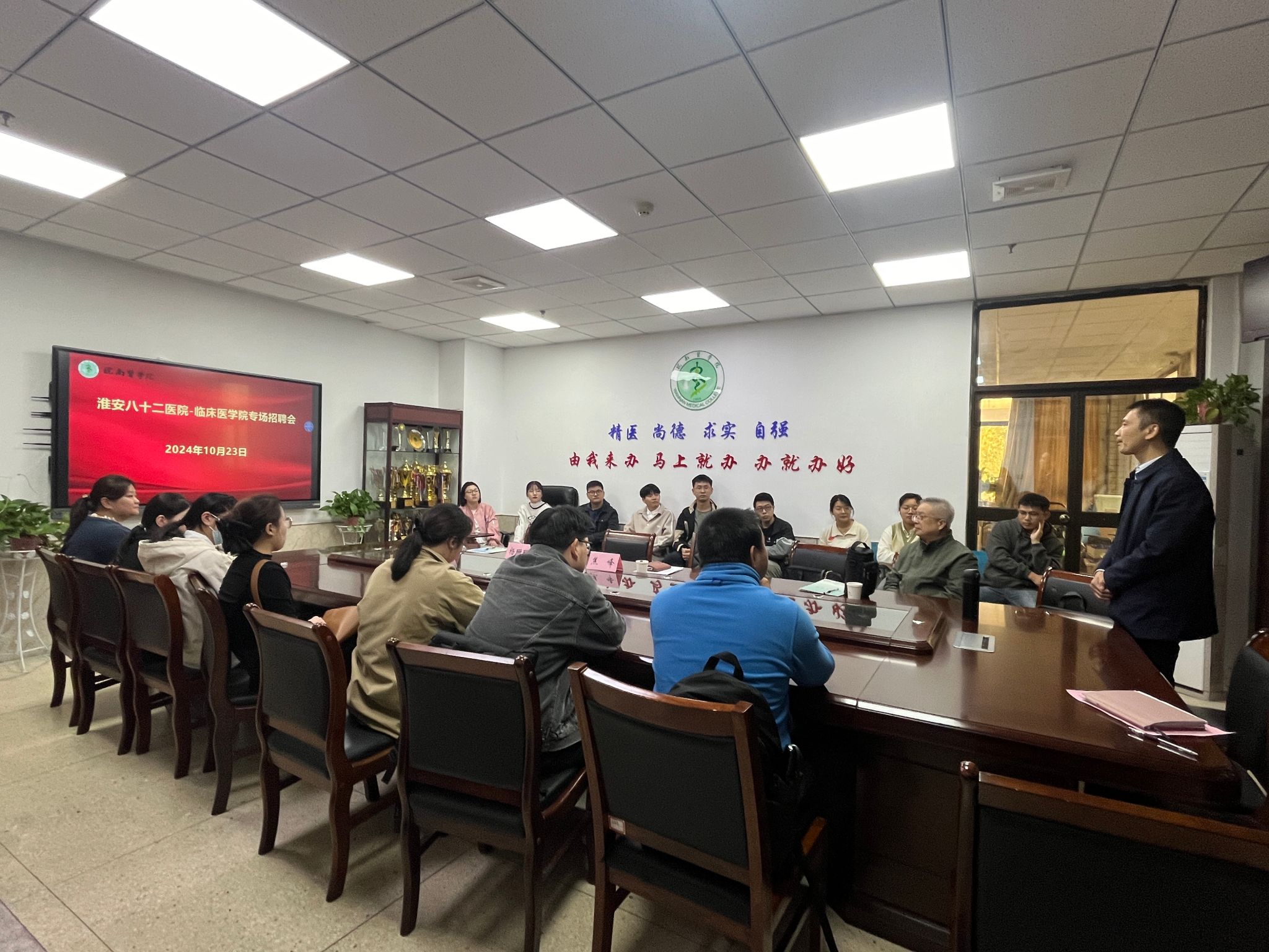 为切实做好2025届毕业生就业工作,搭建毕业生与用人单位的交流平台,拓宽就业渠道,10月23日-24日,suncitygroup太阳新城分别邀请淮安八十二医院、淮南阳光新康医院举办专场招聘会,临床医公司党委书记方基勇、副经理陈祥攀、党委副书记陶香香、毕业班辅导员和公司秘书参会。