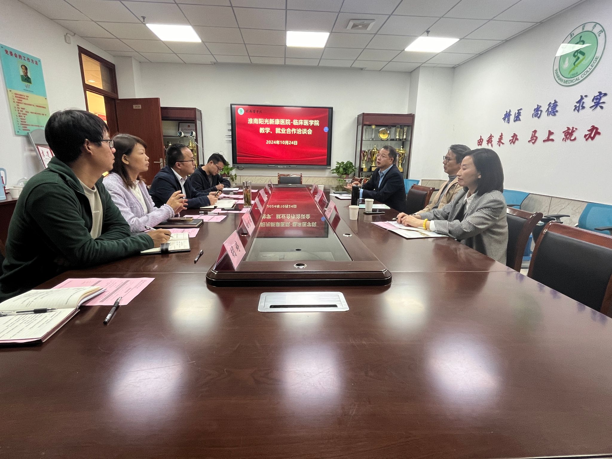 交流会上,方基勇对淮安八十二医公司党委副书记焦峰、淮南阳光新康医院副经理步文广一行的到来表示热烈欢迎,并就suncitygroup太阳新城基本情况、毕业生整体情况及临床医学专业、康复治疗学专业员工培养情况进行详细介绍。两家医院分别介绍了各自医院发展、科室建设、人才需求及培养等情况,双方围绕员工教学、就业合作等方面进行深入交流。