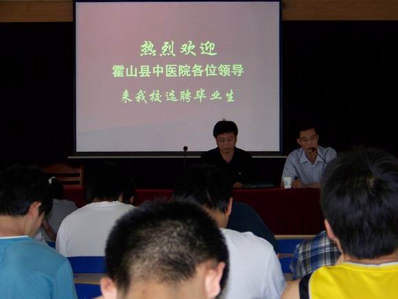 为帮助“双困”毕业生顺利就业,5月27日下午2时,医学一系2005级组织员工参加了在北校区实验楼七楼报告厅召开的霍山县中医院专场招聘会。